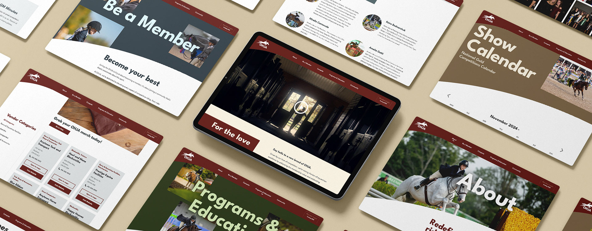 In working with leadership, a simple truth surfaced: everything this community stands for begins with the bond between a rider and their horse. That realization became the spark for a full rebrand, resetting the mission, vision, and values and giving the board a renewed sense of direction. This gave way to a new brand strategy and identity built around “For the love of competition,” a clear expression of the passion that drives riders at every level. The rebrand is now rolling out across the website, magazine, sponsorship materials, and educational programs, re-energizing members and setting the foundation for OHJA’s next chapter.