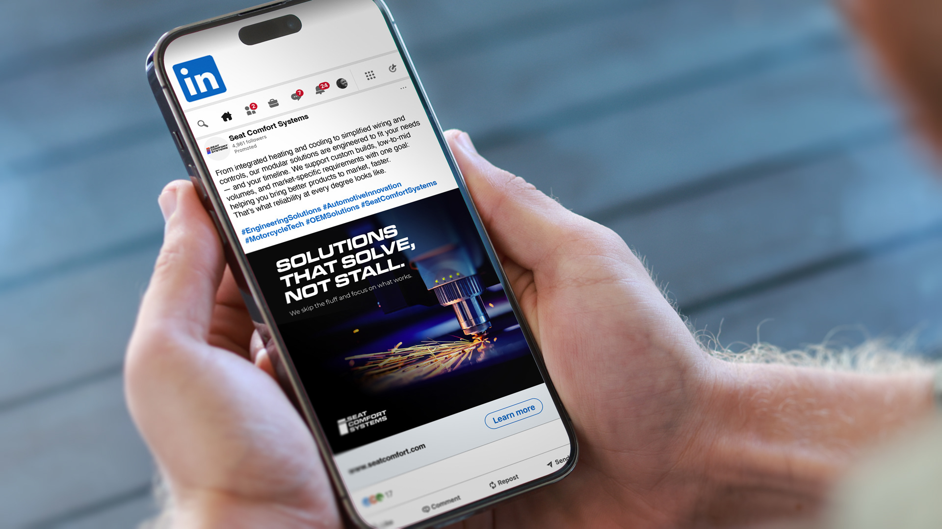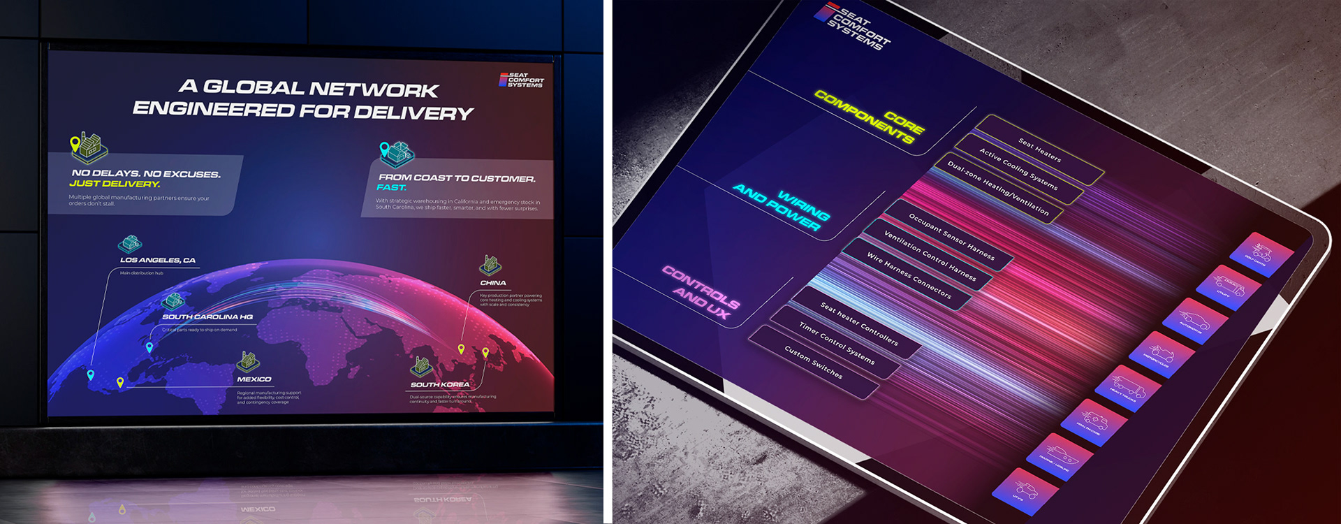 Seat Comfort Systems (SCS) is a U.S.–based, family-owned manufacturer of custom seat heating and cooling systems for OEMs and Tier 1 suppliers, known for speed, reliability, and hands-on engineering depth. Despite more than 25 years of proven performance, the external brand didn’t reflect the scale, capability, or confidence of the organization. Grounded in the human truth that SCS is built on decades of trust, grit, and shared experience, the brand was rebuilt from the inside out.